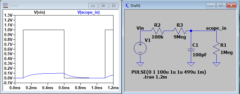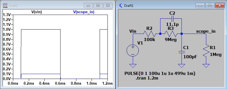 Lastly, the compensated probe was simulated in LTSpice to see how the