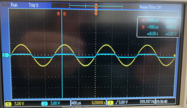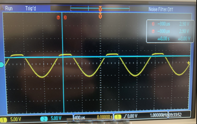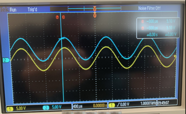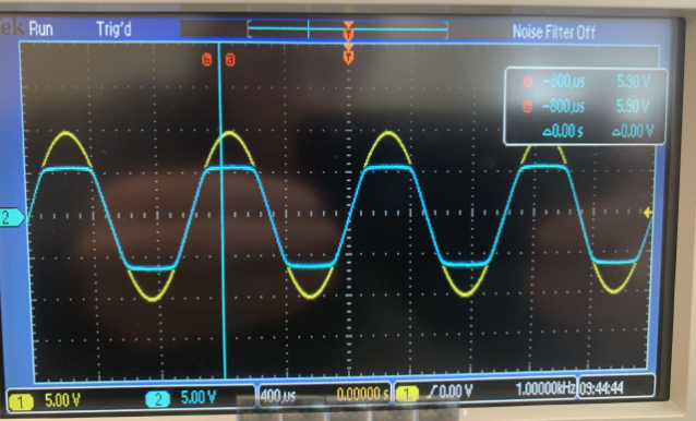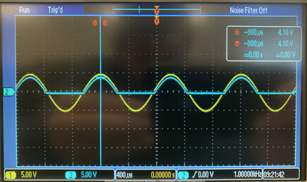 with a 10 V Vpp sine wave with a 1k Hz frequency. This circuit was