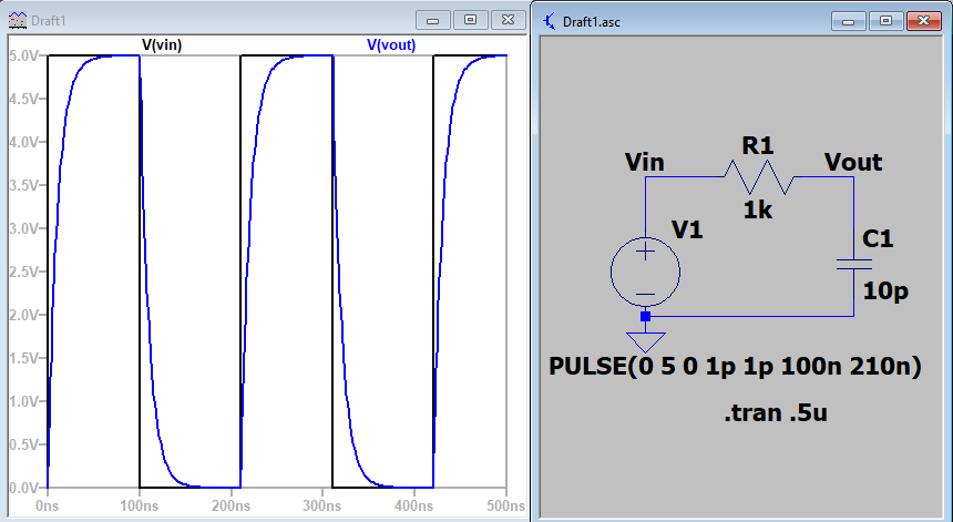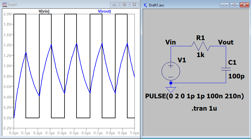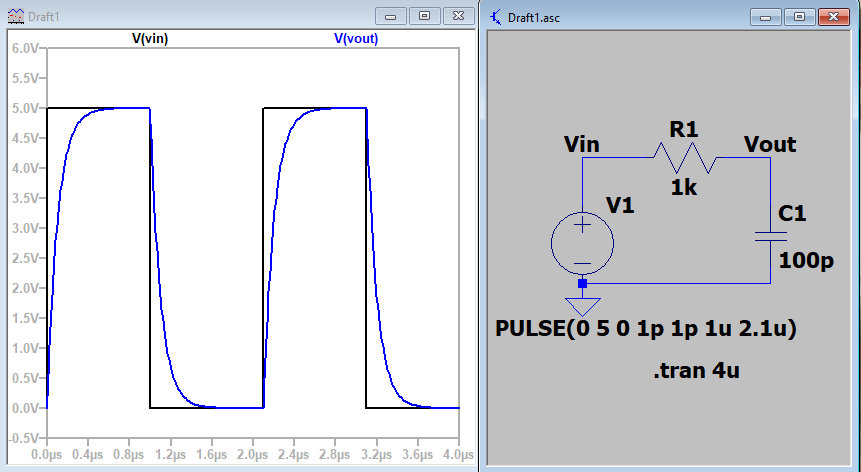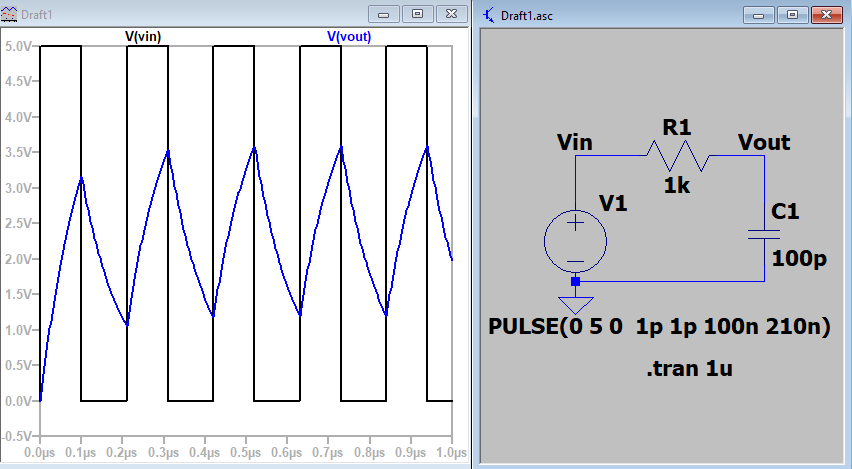 Figure 1. Vout doesn't reach the voltage of Vin due to limited bandwith of the circuit.
