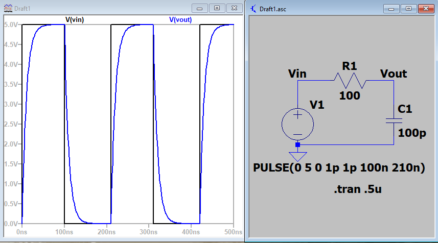 Figure 1.2d. The capacitor reaches full charge due to reducing the resistor to 100ohm.