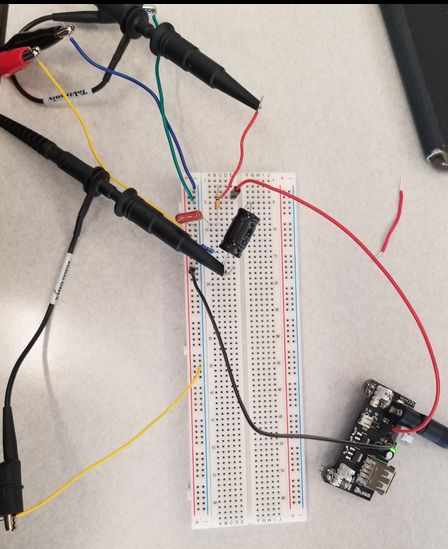 Figure 11: The circuit shown on a bread board of part 1 (Task 6)