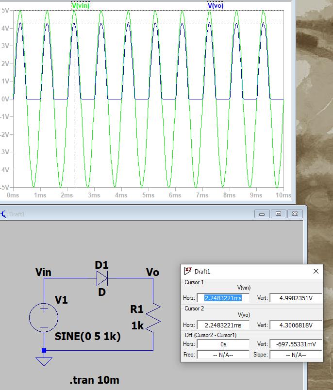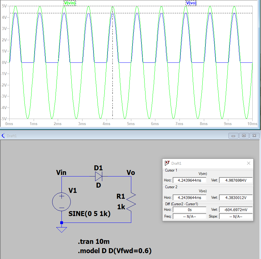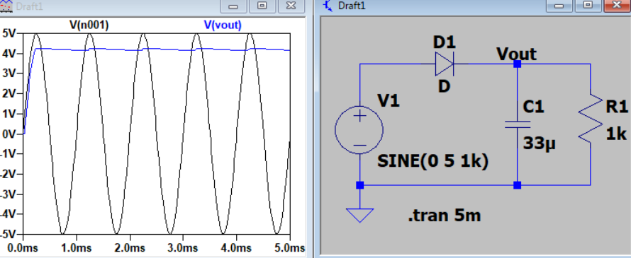 building a circuit with one resistor, capacitor, and diode in LTSpice