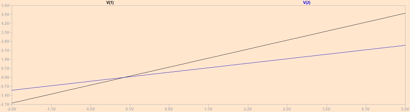 | Task 3 V1 1 0 0 R1 1 2 30 R2 2 0 30 .dc V1 -2 5 |