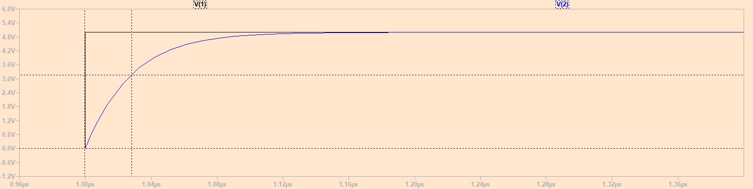 | Task 5 V1 1 0 PULSE(0 5 1u 1p 1u 2.1u) R1 1 2 1k C1 2 0 27p .tran 10u |