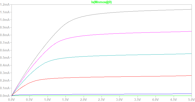 The MOSFETs designed in this lab performed as expected with currents leveling out in the saturation region and experiance with ElectricVLSI was gained.
