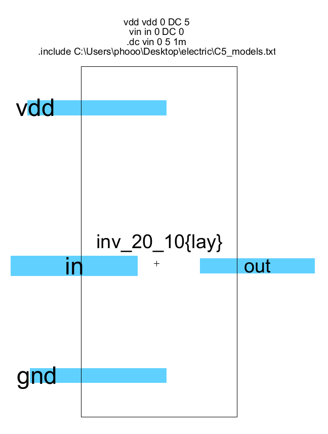The Goal of this lab is to design a MOSFET based inverter in ElectricVLSI as well as gain experiance with said software.