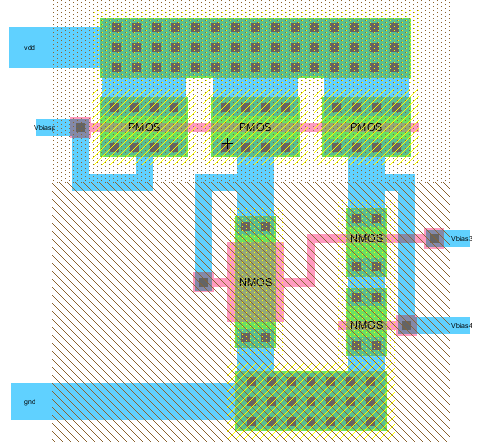 ElectricVLSI was setup prior to starting following the same procedure as in Lab 6. This report follows instructions found in Tutorial 5: Complete the Op Amp IC on Dr. Li's website. The following figures show the schematic and layout of all the components used to in this chip layout.
