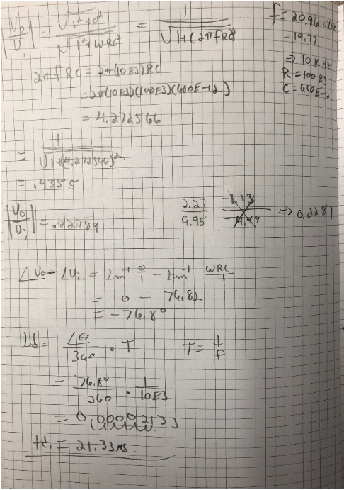 the circuit. An oscilloscope was used to read the Vin and Vout signals