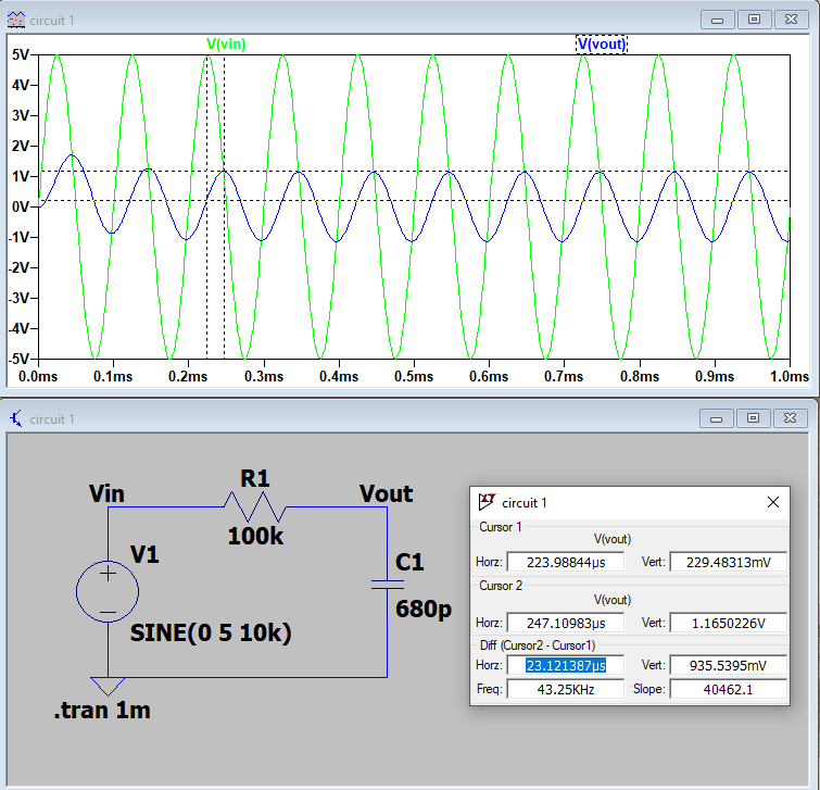 680pF capacitor. This circuit was given a sine wave input signal with