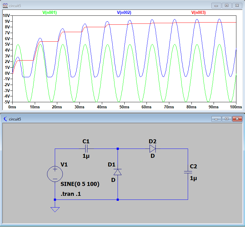 Figure 10. LT Spice simulation of the voltage doubling circuit.
