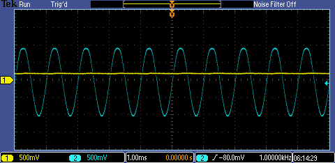 40 V vpp sine wave at a frequency of 1 kHz. This configuration of the