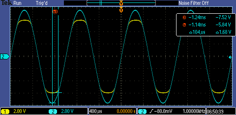 signal of 5V vpp was altered, esentialy cutting off the bottom of the