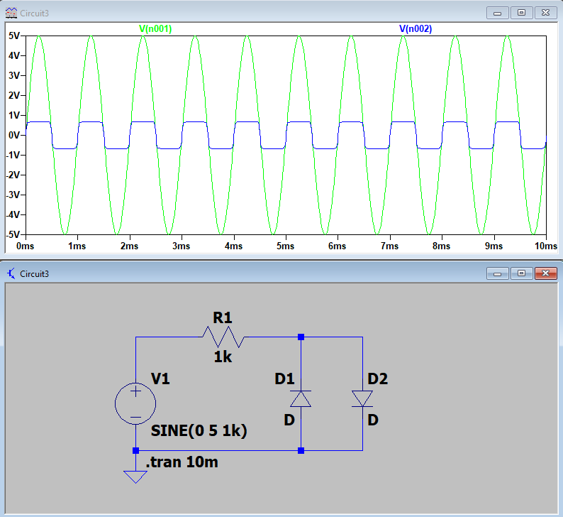 Figure 8. The LT Spice simulation of the circuit with two diodes clamping the voltage.