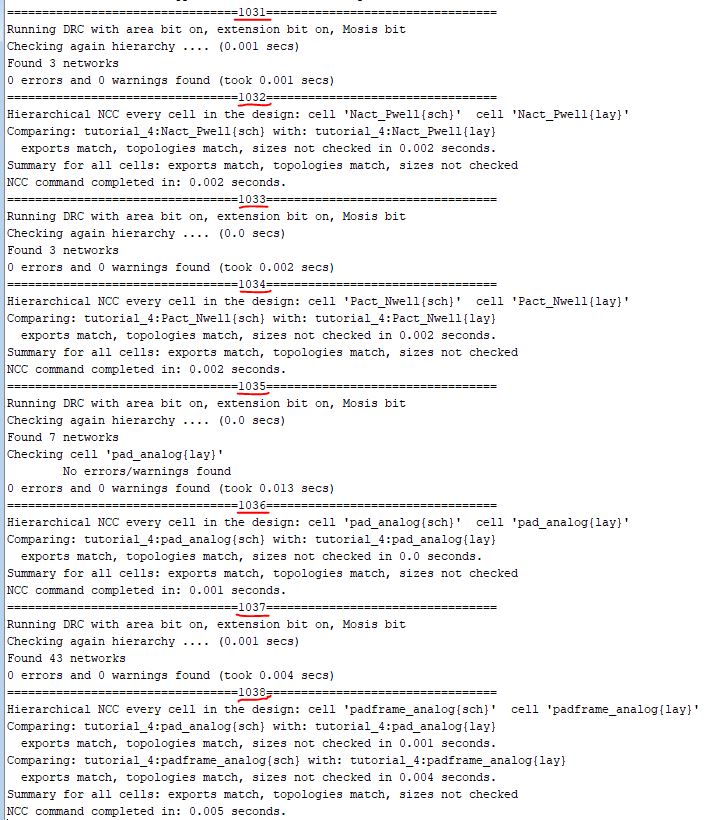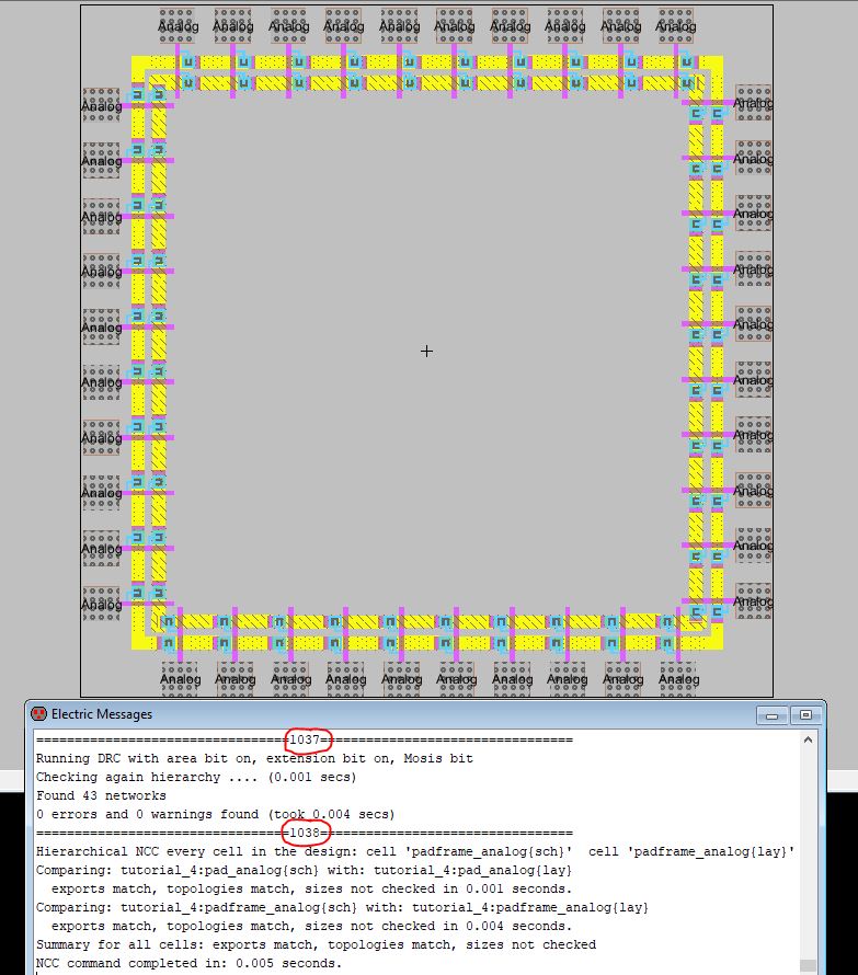 Figure 9: The electric message window in Electric VLSI showing there were no errors on any of the components