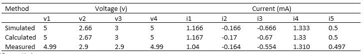 Table1: Voltage is measured at nodes