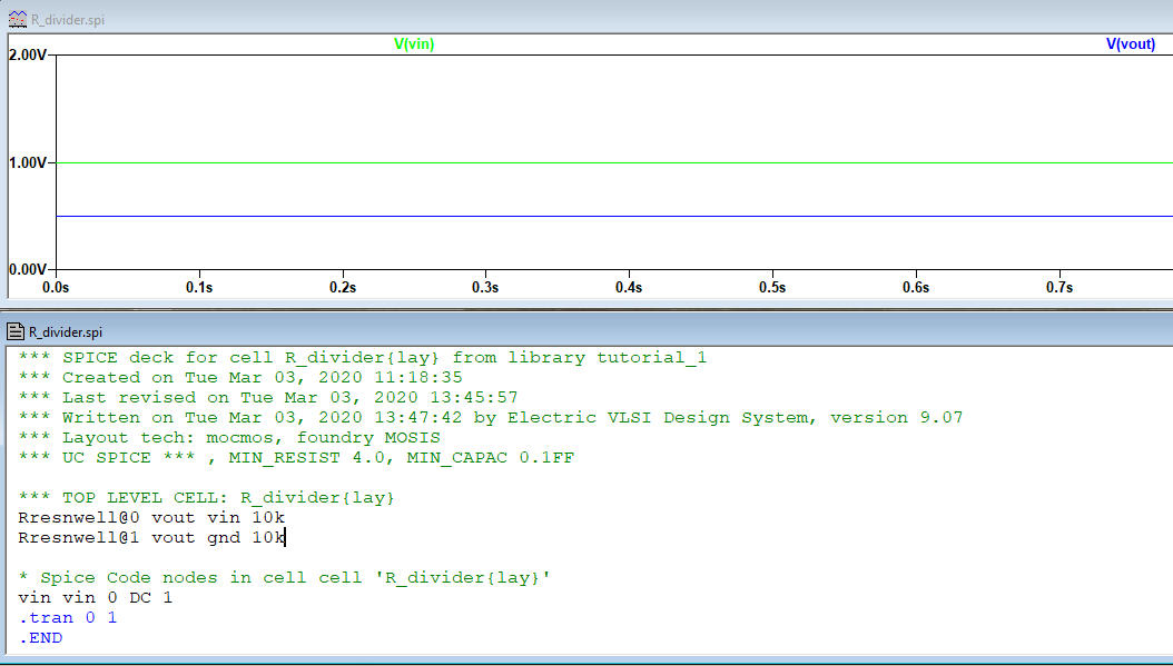 1. Introduction to ElectricVLSI (a voltage divider) 2. In this lab, students were introduced to the ElectricVLSI