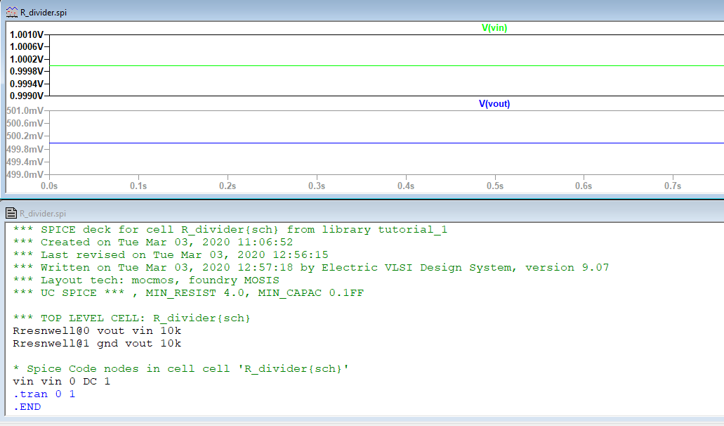 Figure 4. The LTSpice simulation of the voltage divider schematic.