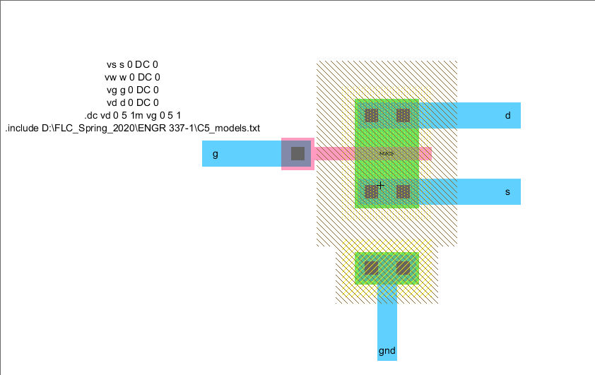 ports (ie gnd, d, s, etc.). The layout was saved and the process was