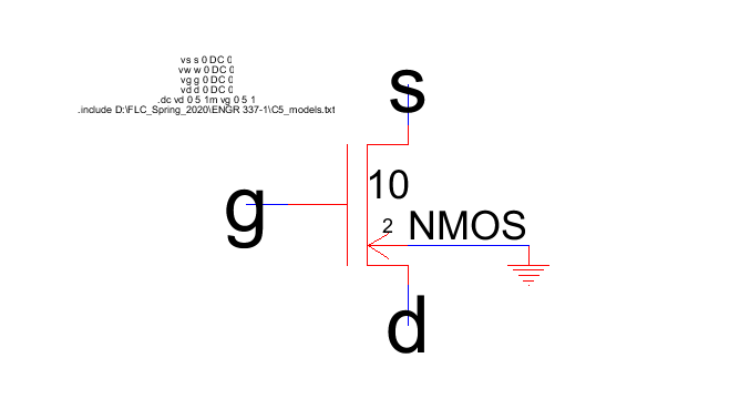 to it. The NMOS node was assigned to the NMOS spice model. Another