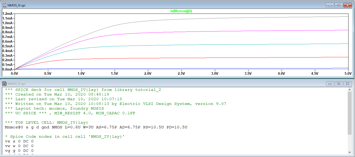 Figure 5. The LTSpice simulation conducted for the completed NMOS MOSFET as prescribed in Tutorial 2.