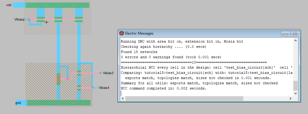 shows the layout view of the bias circuit. As seen in both