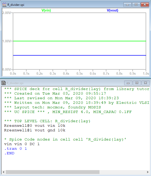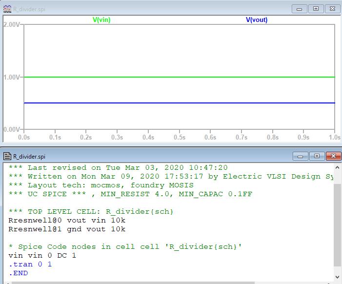 Figure 1: Voltage divider schematic drawn in ElectricVLSI