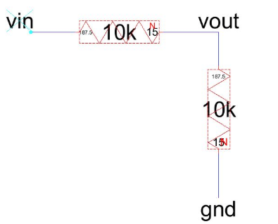 Figure 3 shows the layout for the voltage dvider circuit, and figure 4 shows the results of simulation in LTspice.
