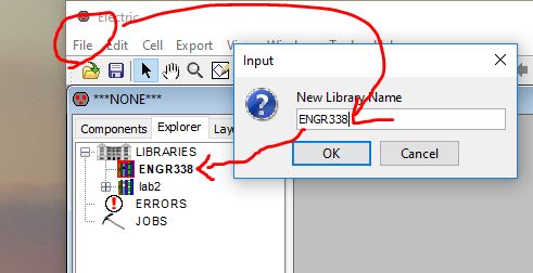 Copy the files in the lab2.jelib library to your ENGR338 library from