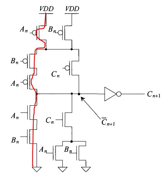 Next, the layout of the high-speed full adder. The trick of organizing