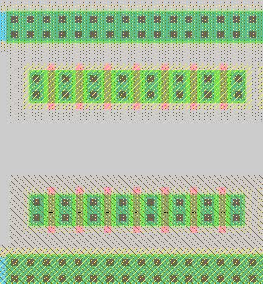 layout, I directly put 7 PMOS and 7 NMOS in series in between two