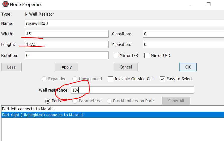 minimum width of n-well is 12 lambda so let’s make a 10k resistor using