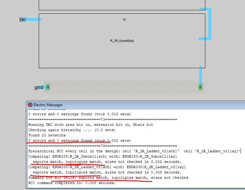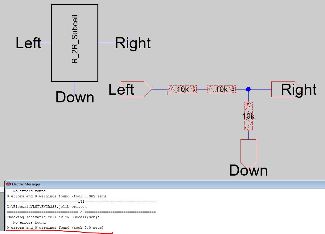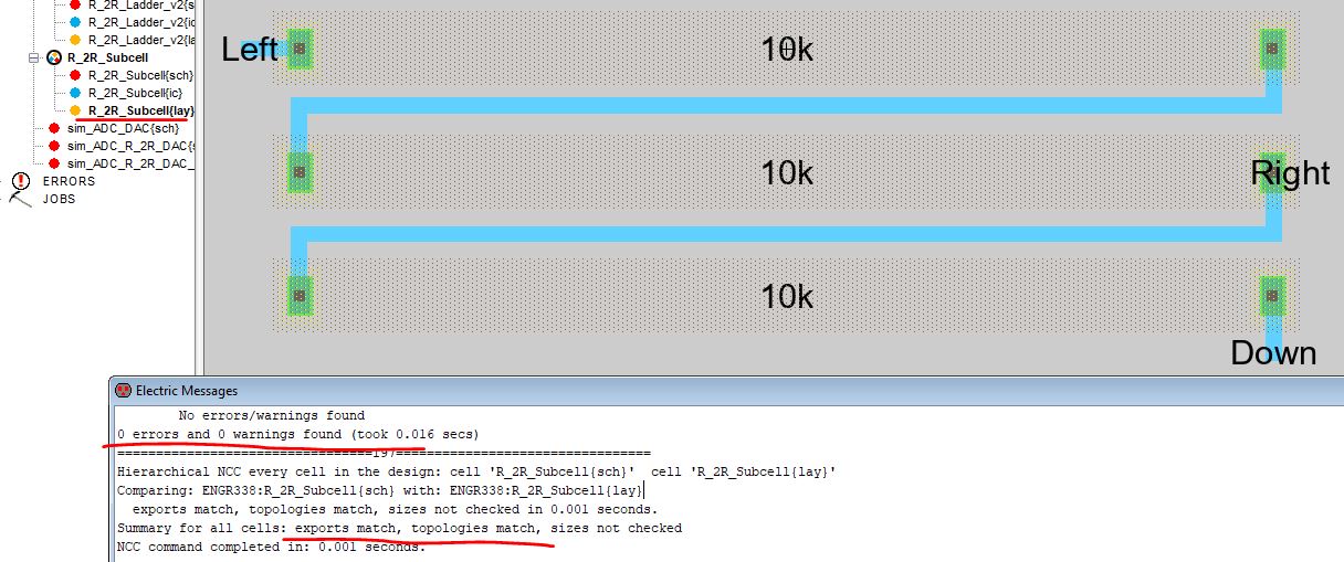 1. Layout the R-2R DAC in Electric VLSI using N-Well resistors.