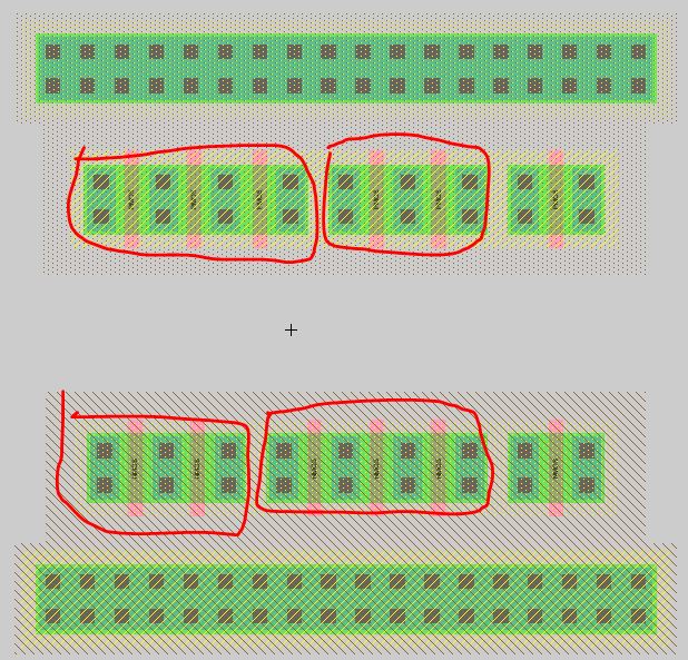 layout, I directly put 7 PMOS and 7 NMOS in series in between two
