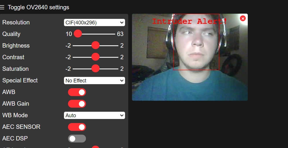 This first project involves connecting an esp32 camera to the web to stream video. This first part streams the video and boxes faces when identified.