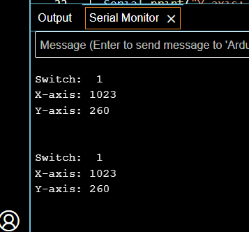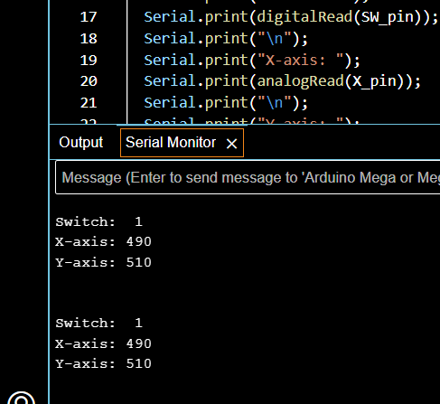 Above are a couple pictures showing the serial port reults changing as the joystick it moved in the x and y directions