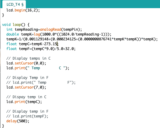 Figure 5: Code used to calculated temperature for IC temperature sensor.