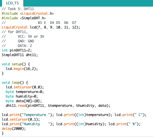Figure 4: Code used to measure temperature using a DHT11 sensor.