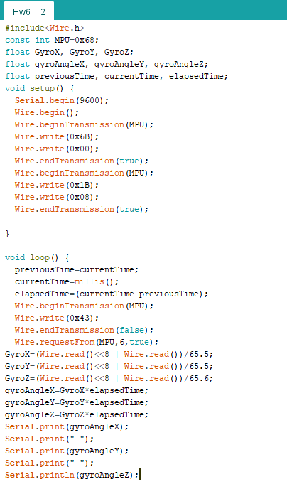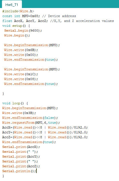 1. Homework 6: Accelormeter (MPU 6050) and the I2C protocol