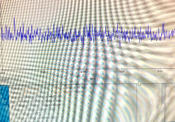 Video 2: Serial plotter, displaying gyroscope data in x, y, and z.