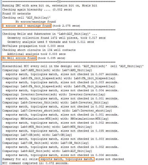Figure 3. DRC, NCC and well checks for the ALU.