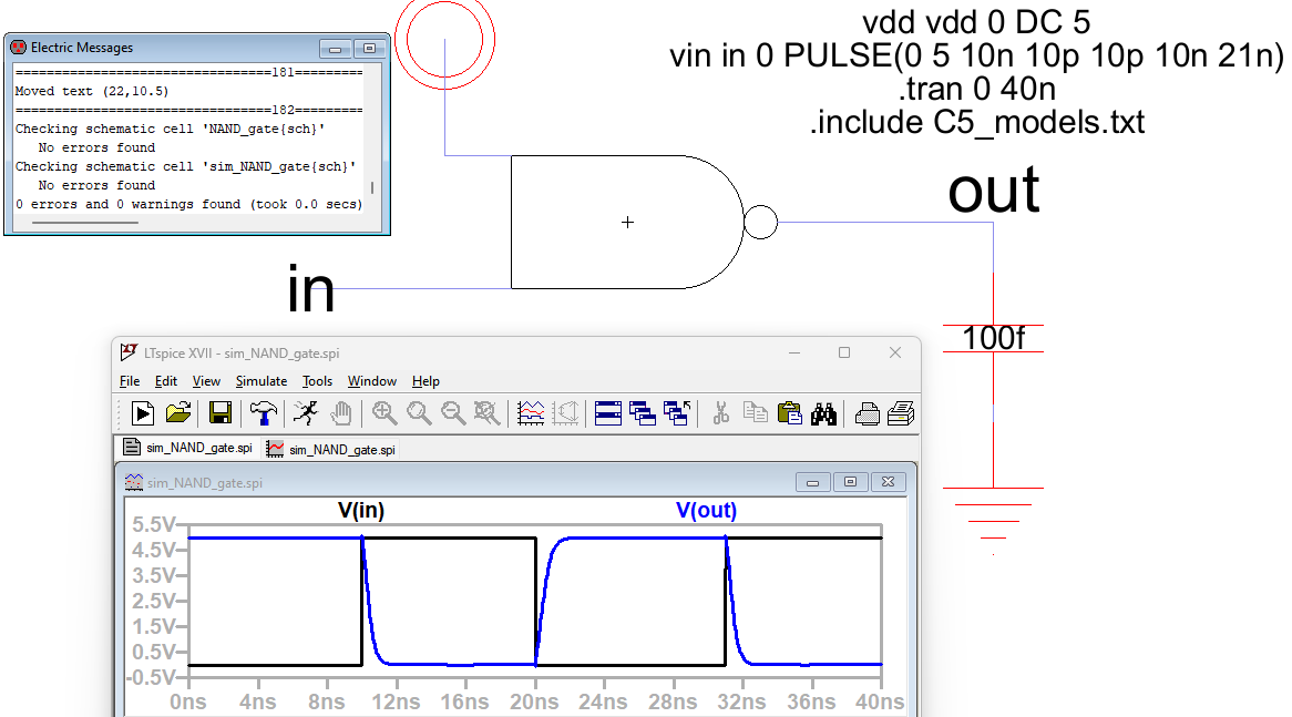 Here is the simulation of the nand gate: