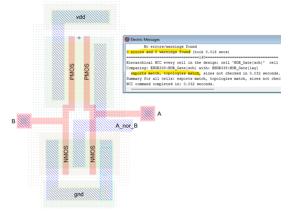 Figure 4: Layout of the NOR gate with no errors.