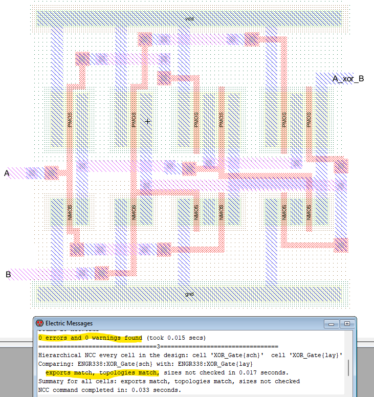 Figure 6: Layout of the XOR gate with no errors.