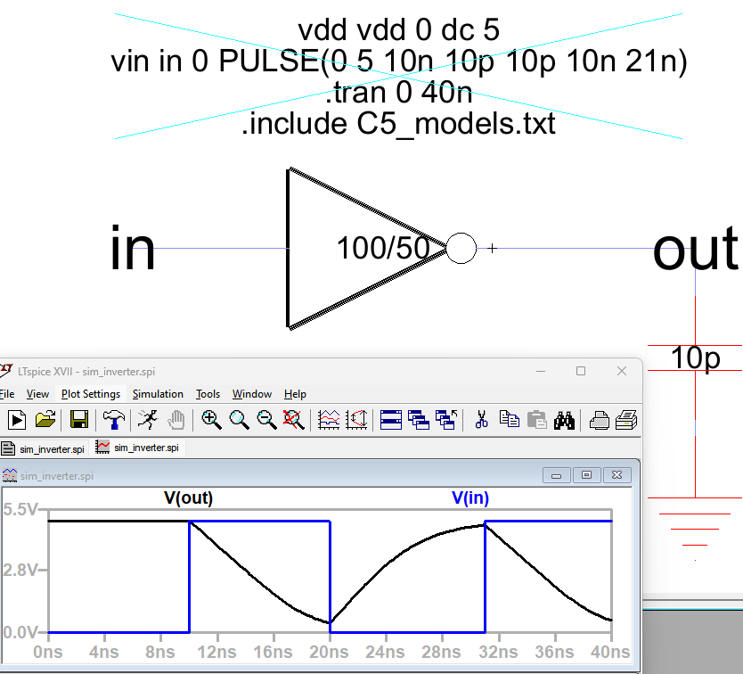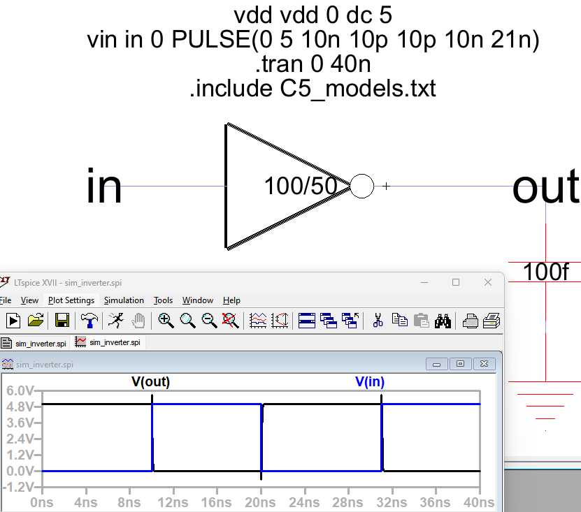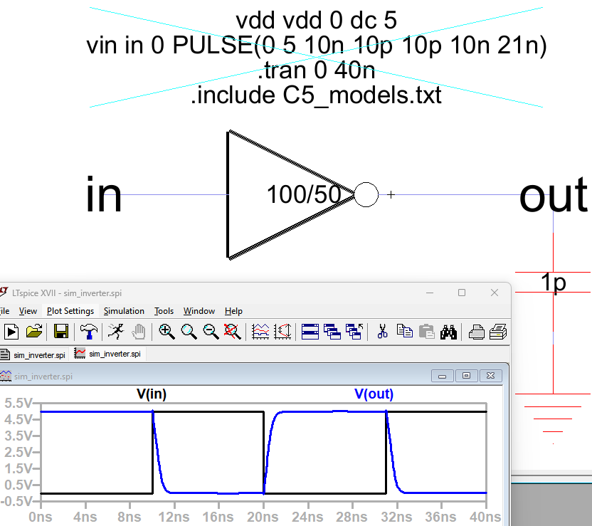 Figure 9: The 100/50 inverter connected with a 1p capacitor.