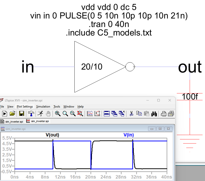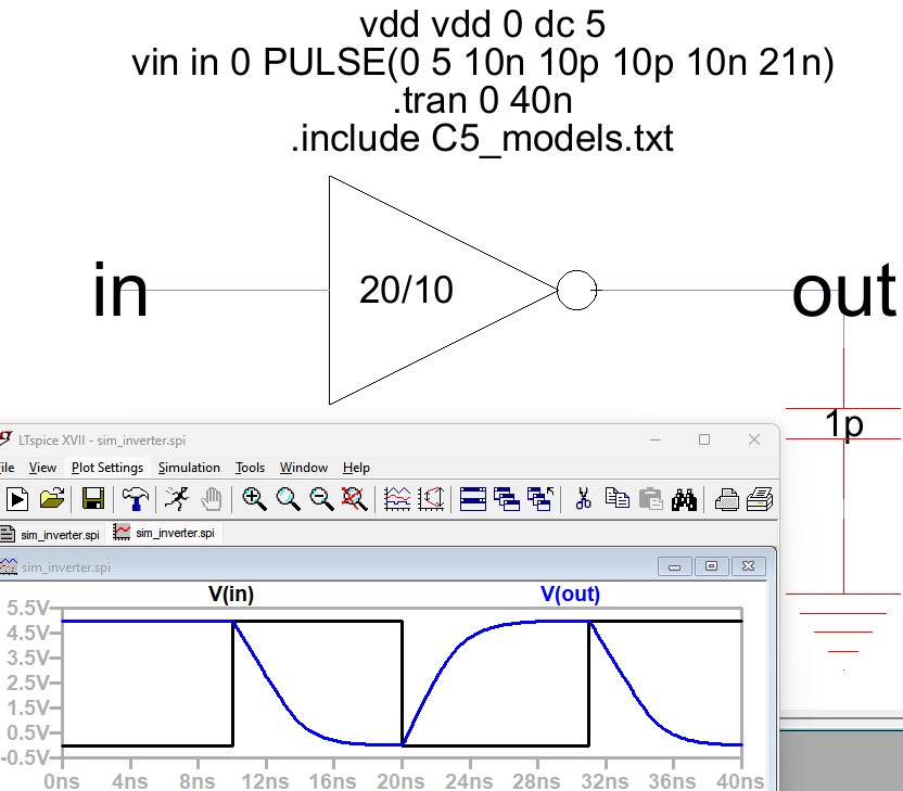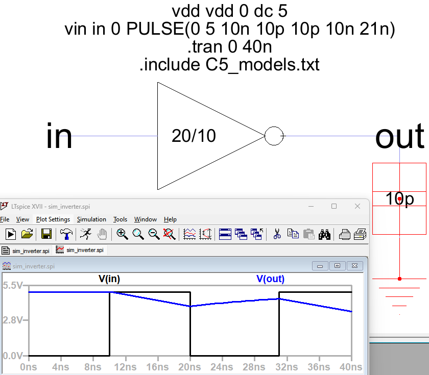 Figure 6: The 20/10 inverter connected with a 1p capacitor.
