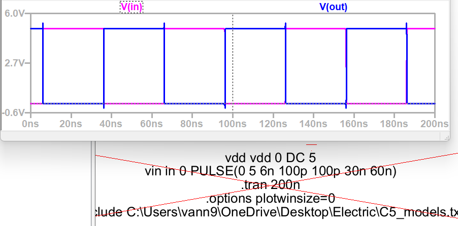 The purpose of this lab is to create an inverter in Electic.