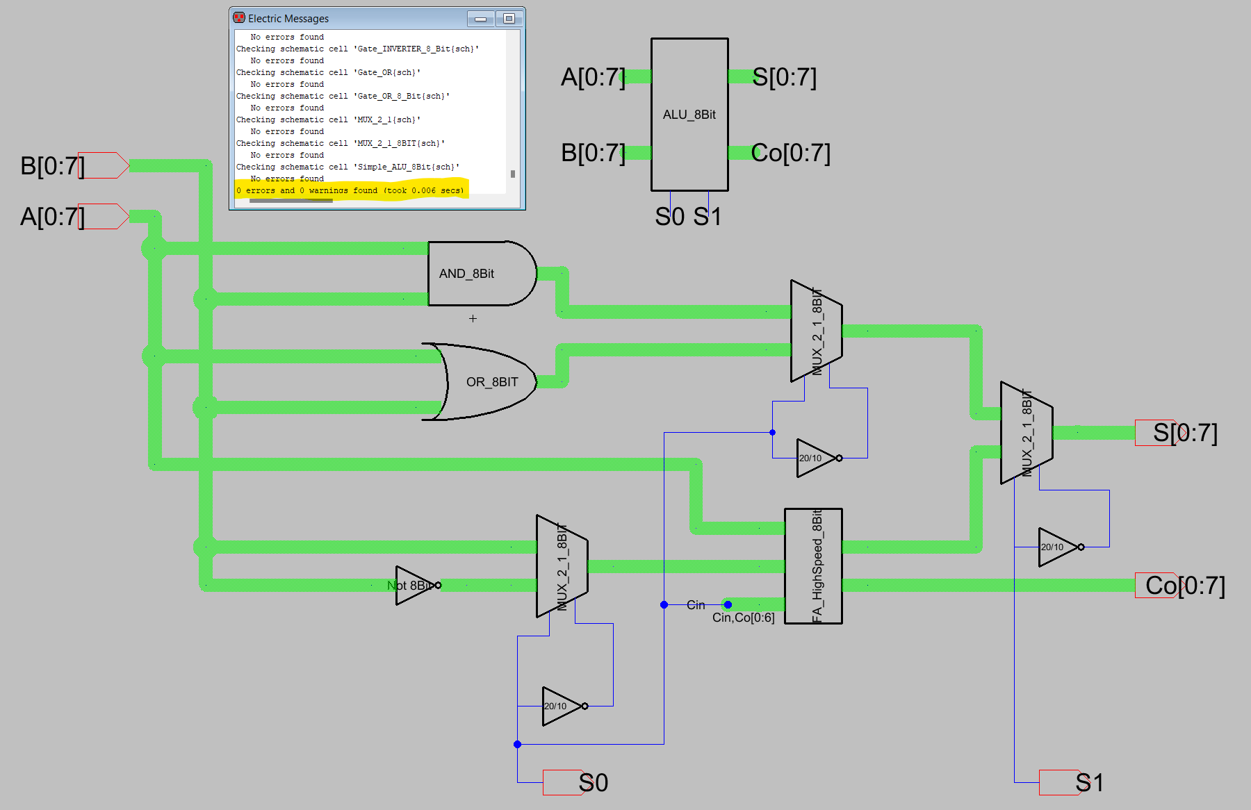 Figure 4: Simple 8-Bit ALU Schematic with no Errors.