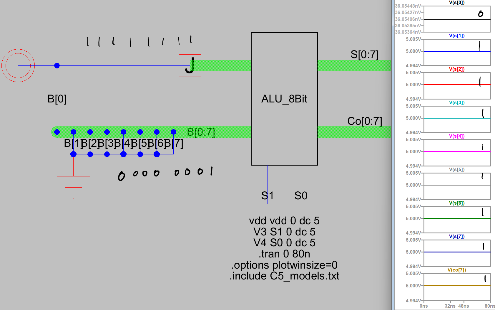 Next is to check the Add function by setting S1 = 1 and S0 = 0.