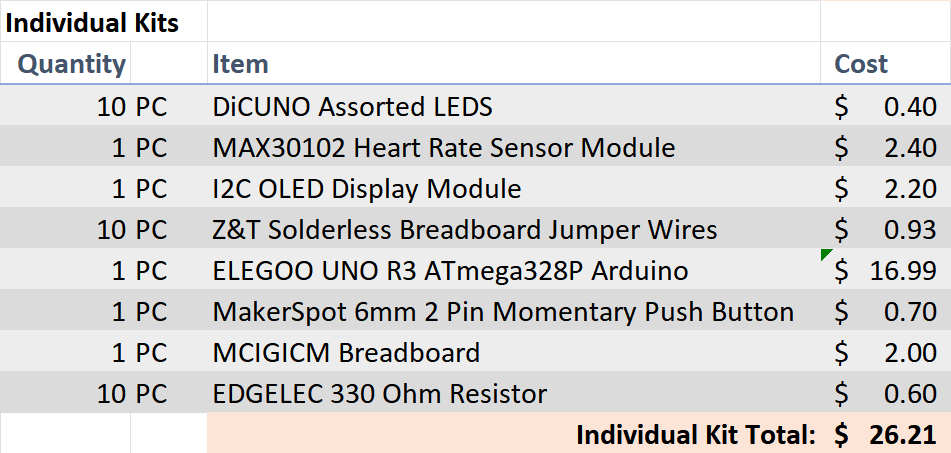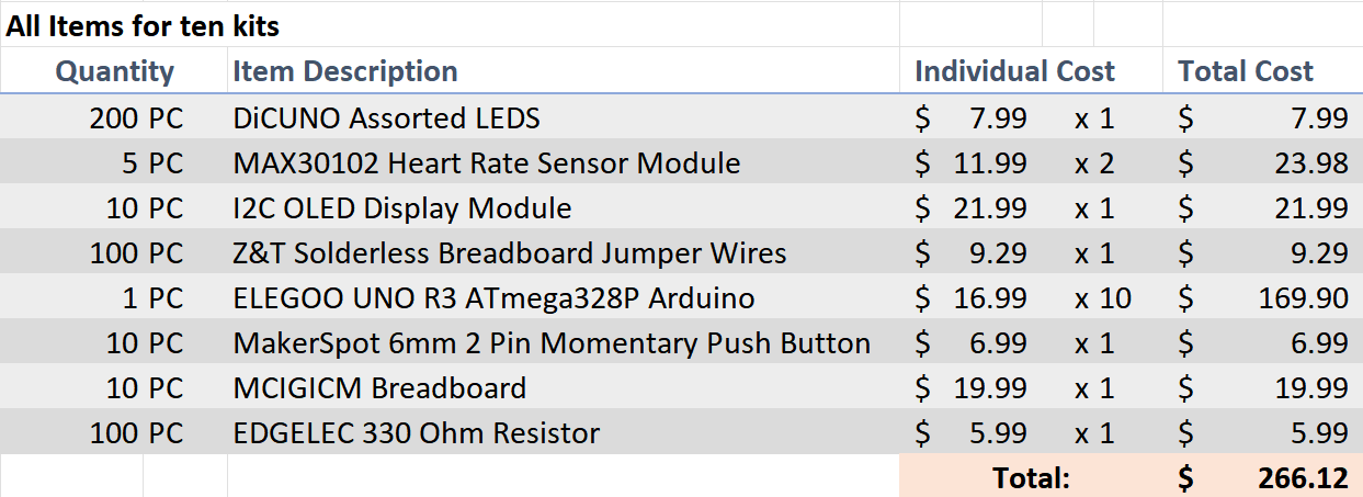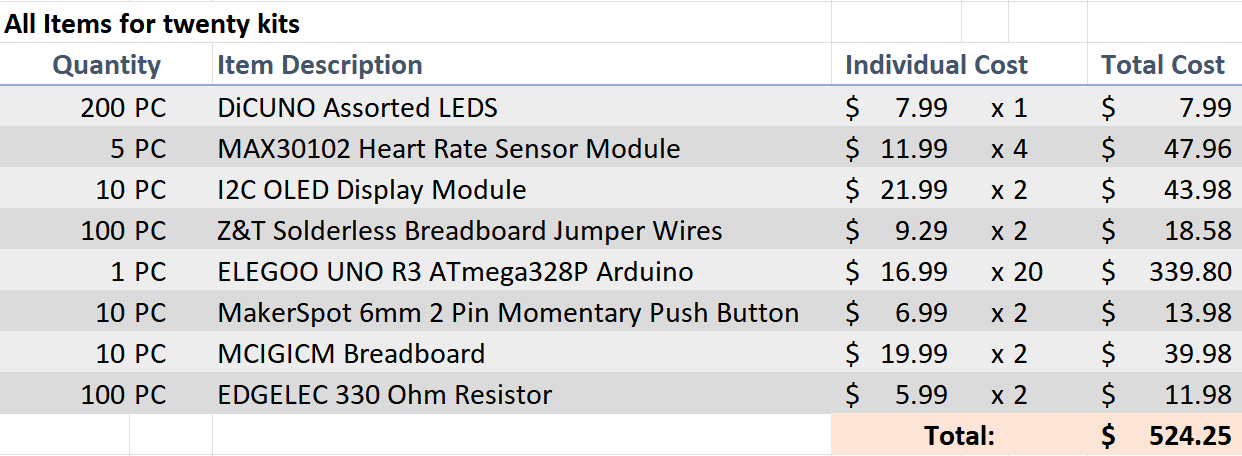 a BOM (bill of materials) spreadsheet to include all the parts that you