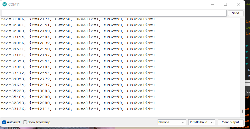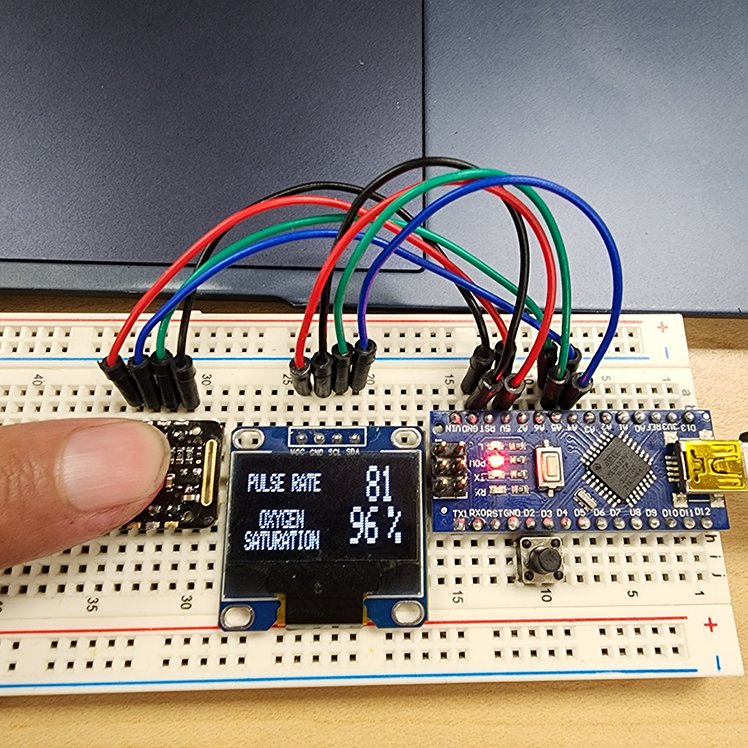 - Measure Oxygen Saturation (SpO2) in serial monitor.